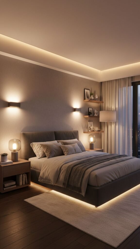 Harsh overhead lighting is the enemy of relaxation. Modern spaces rely on layered lighting to create warmth and depth.