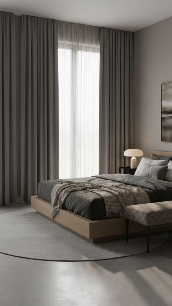 Sleep is the ultimate goal of the bedroom, and controlling light is essential. Modern curtains should be functional yet elegant.
