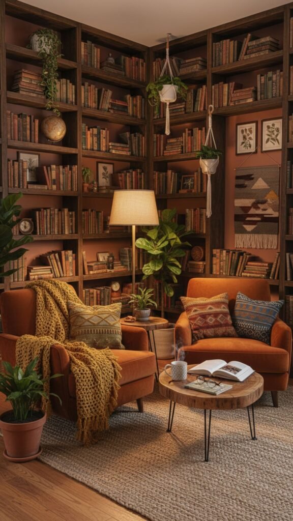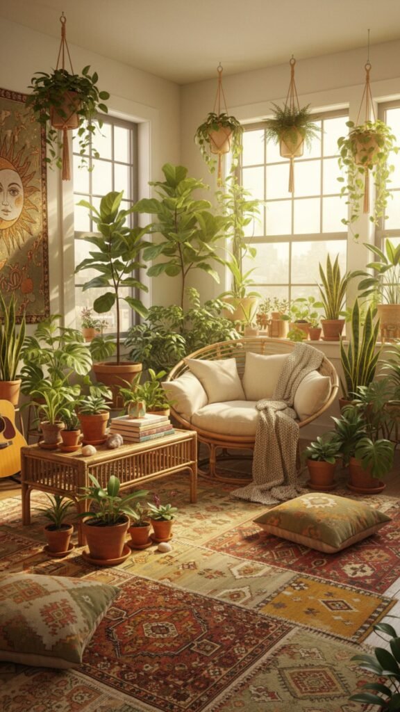 Bohemian decor, with its emphasis on layered textures, warm colors, and eclectic accessories, is the perfect style for a TV-free zone. Without a screen dictating the furniture layout, you can center your room around the things that truly bring you joy.