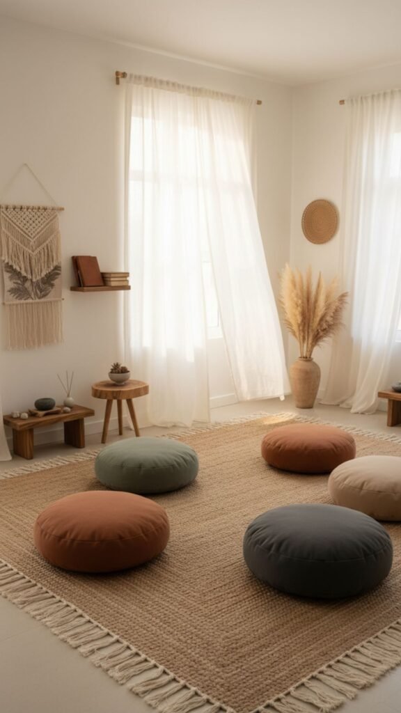 - Place a soft, high-pile rug or meditation cushions in the center of the room.