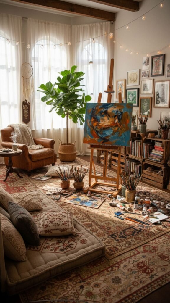 - Leave unfinished artwork on display to add an authentic, lived-in feel.