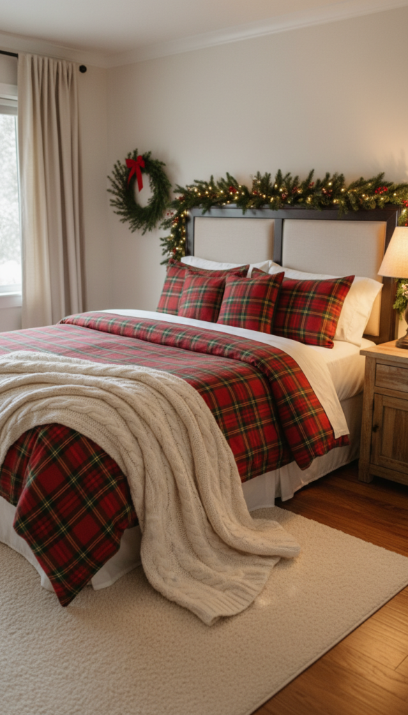 - Swap your duvet cover for a red or green plaid comforter.