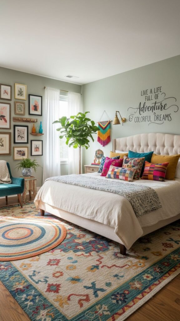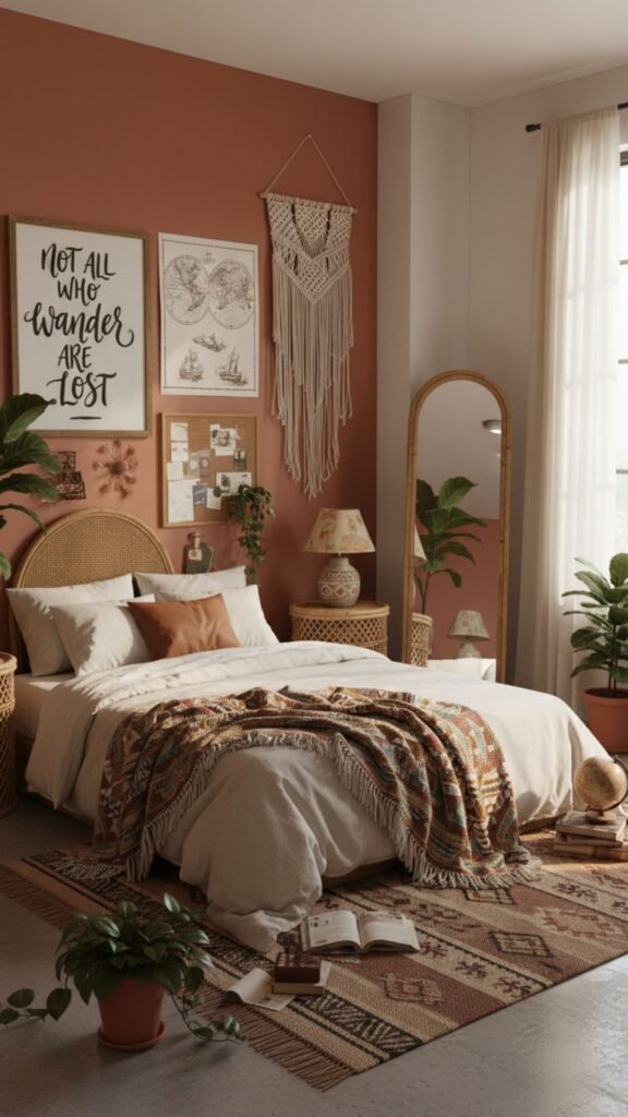 For the free spirits and adventurers, this quote is a natural fit. It pairs beautifully with travel-inspired or bohemian bedroom styles.