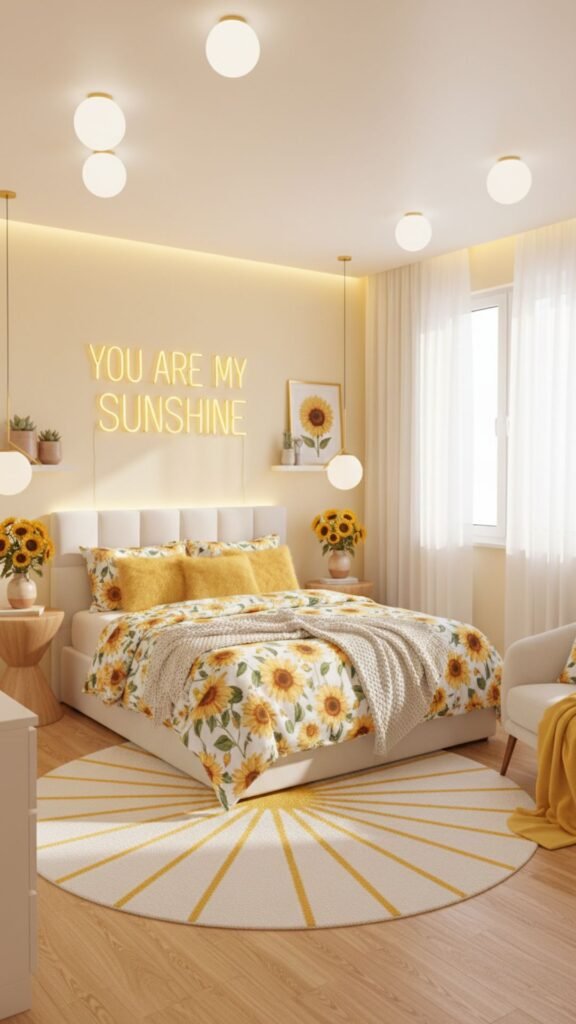 You can use neon signs, wooden signs, canvas prints, photo frames, projector lights, or even hand-painted lettering directly on the wall. Each method offers a different look and feel to suit your personal style.