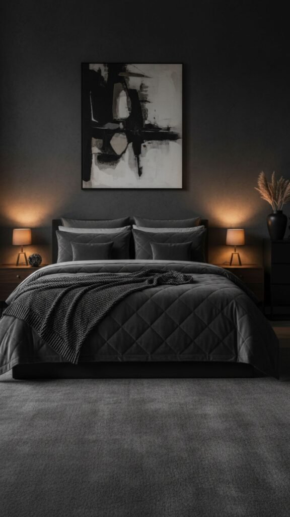 - Use warm lighting—bedside lamps with warm bulbs make charcoal tones feel inviting rather than cold