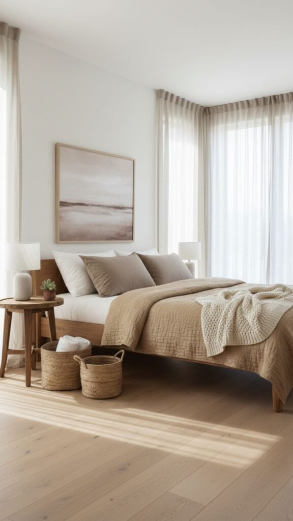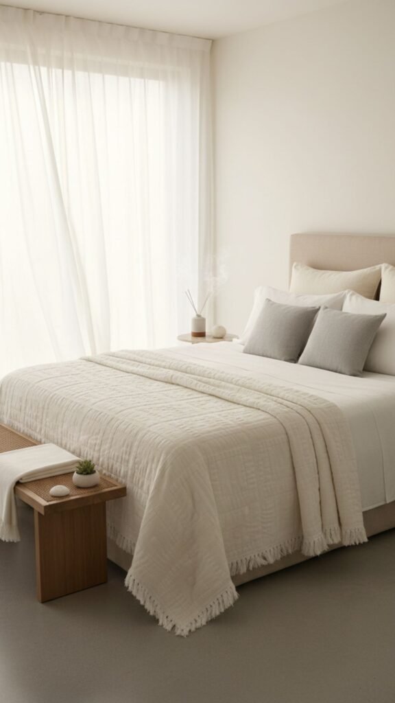 Nothing says understated luxury quite like a linen-look quilt in a warm neutral tone. Sand, oat, or taupe shades create a grounding, organic feel that pairs seamlessly with natural wood furniture and woven textures.