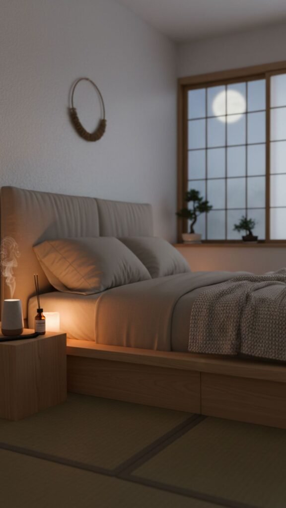 Scent plays a powerful role in relaxation. Japanese bedrooms often incorporate subtle, natural fragrances that calm the mind and prepare the body for sleep.