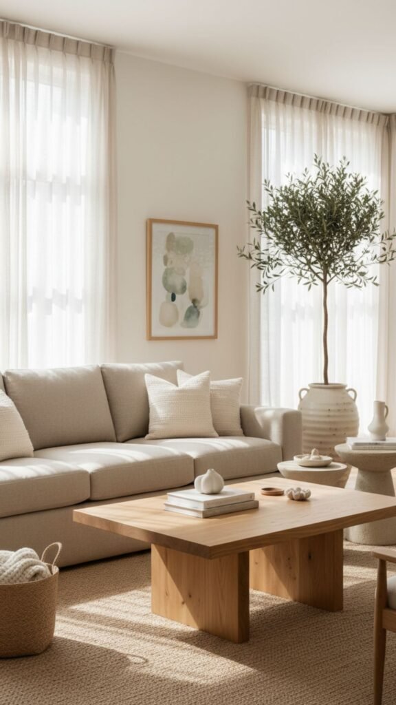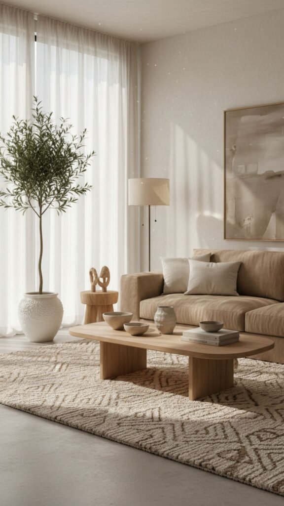 This style blends sleek, modern lines with warm, natural materials. It creates a calming environment that feels both sophisticated and deeply rooted in nature. Neutral palettes dominate the space, accented by textured fabrics.