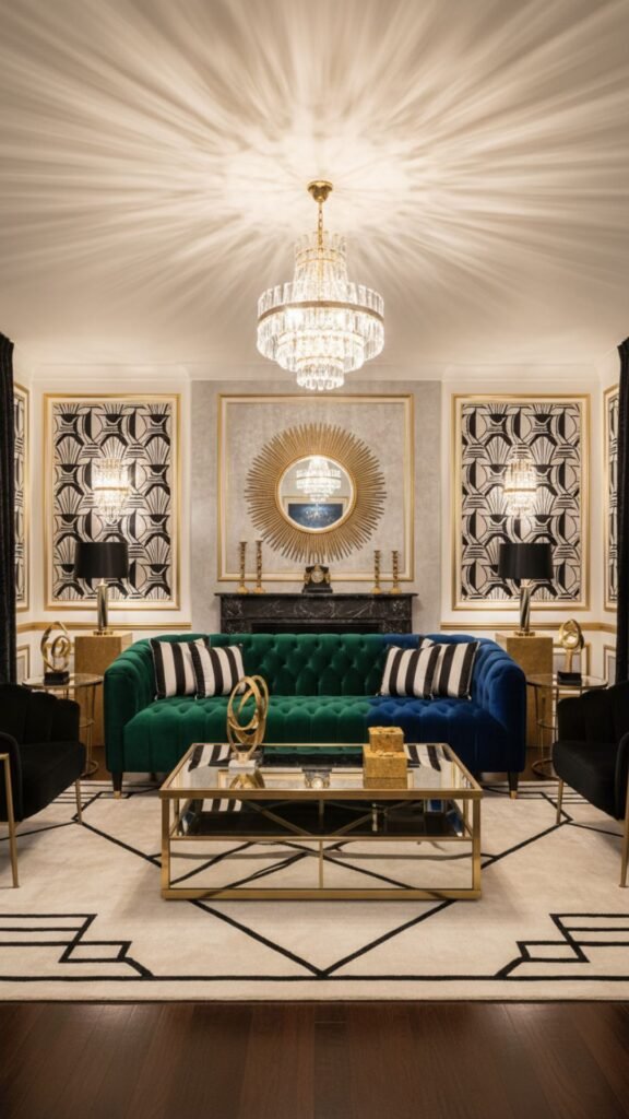 Glamour and luxury take center stage here. This style uses bold contrasts, metallic finishes, and sumptuous fabrics to create a dramatic and highly entertaining space perfect for hosting guests.