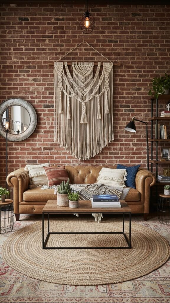 - Expose brick walls or use high-quality brick-patterned wallpaper.
