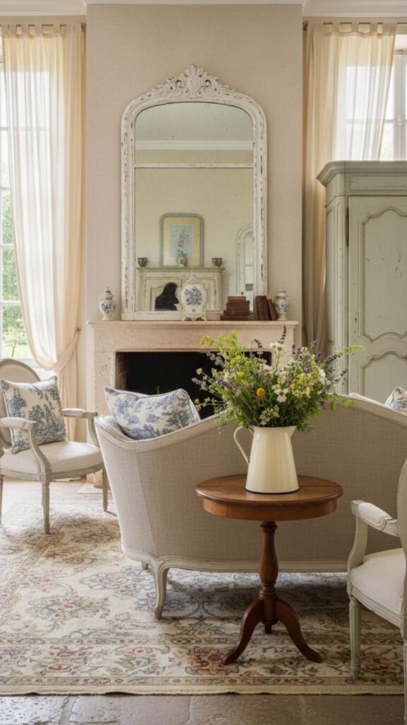 Elegance and rustic charm define this European-inspired style. It features antique furnishings, subtle floral patterns, and a soft, muted color palette that feels historically rich and welcoming.