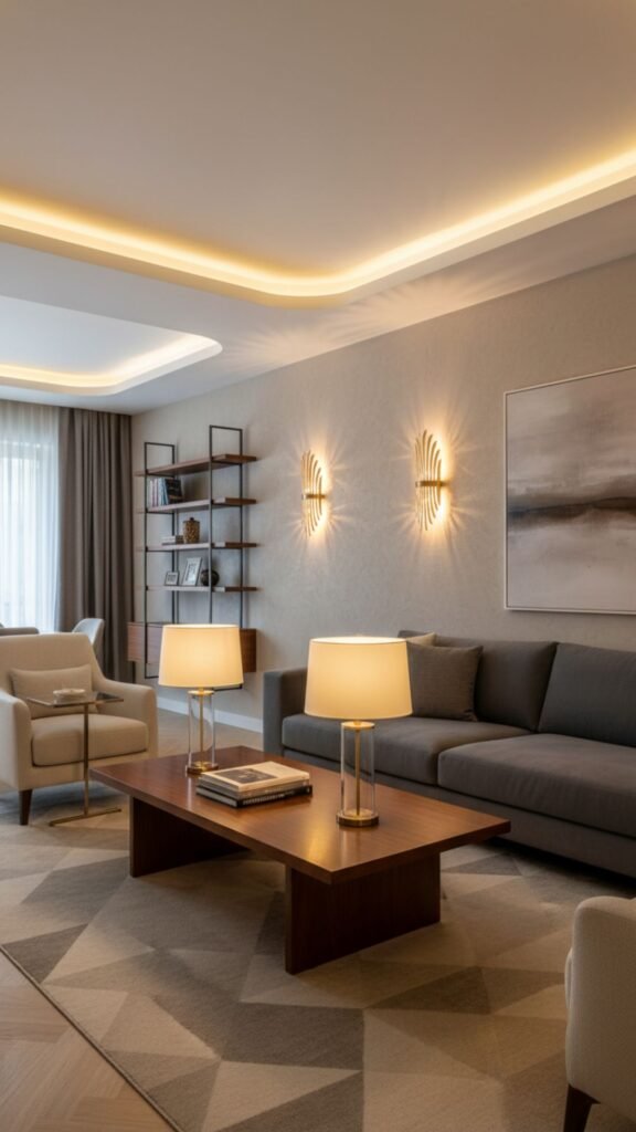 - Use warm-toned bulbs (2700K–3000K) for a cozy feel