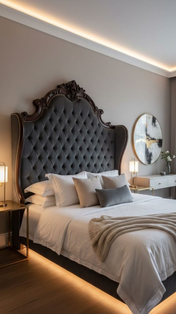 A headboard anchors the entire room. It draws the eye upward, makes the bed look more polished, and adds texture or color without a major renovation.