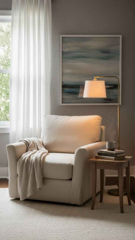 - Add a small side table or book ledge within arm’s reach