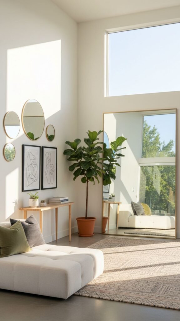 - Position a mirror opposite a window to reflect natural light