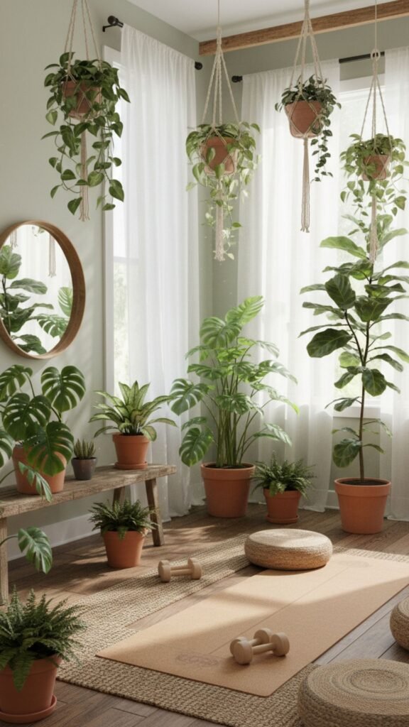 Transform your bedroom gym into an indoor jungle. Plants improve air quality and create a calming atmosphere that makes exercise feel less like a chore.