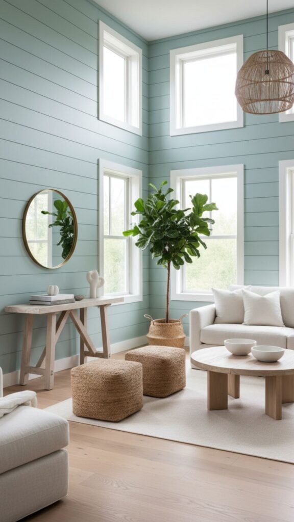 Shiplap is a coastal staple—and for good reason. It adds architectural character while keeping the overall feel light and airy.