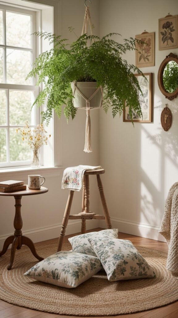 Avoid sleek, modern plastic pots. Instead, use natural or upcycled materials like terracotta, weathered stone, wicker baskets, macrame hangers, and vintage tins or teacups to house your plants.