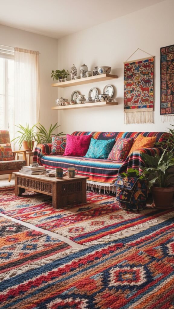 Showcasing items collected from travels adds deep character to your home. Moroccan rugs, Japanese ceramics, or Mexican textiles bring diverse cultural stories into your living room. These pieces act as natural conversation starters.