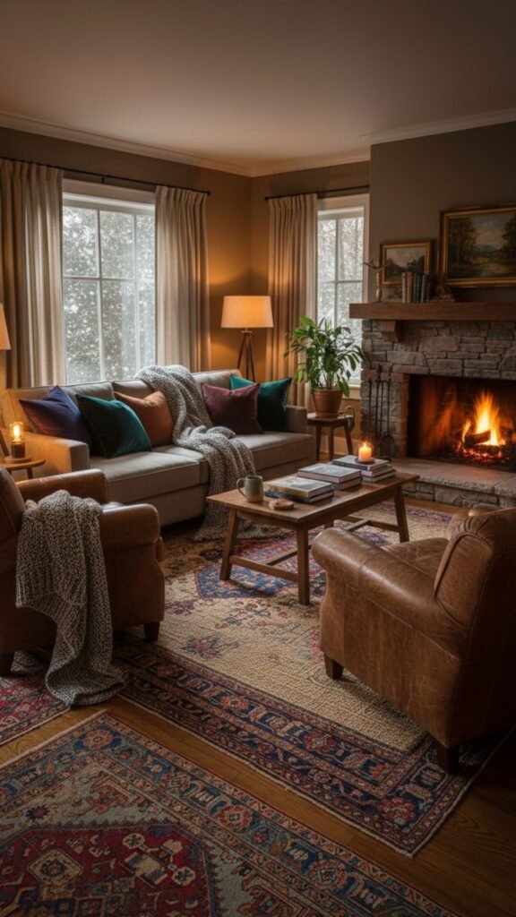Relying solely on visual color can leave a room feeling flat. Layering different tactile materials like leather, velvet, chunky knits, and smooth brass adds warmth and depth. This tactile variety is essential for a cozy atmosphere.