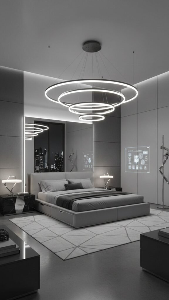 For a futuristic, ultra-modern aesthetic, consider an LED ring chandelier. Concentric circles of light create a striking architectural element.