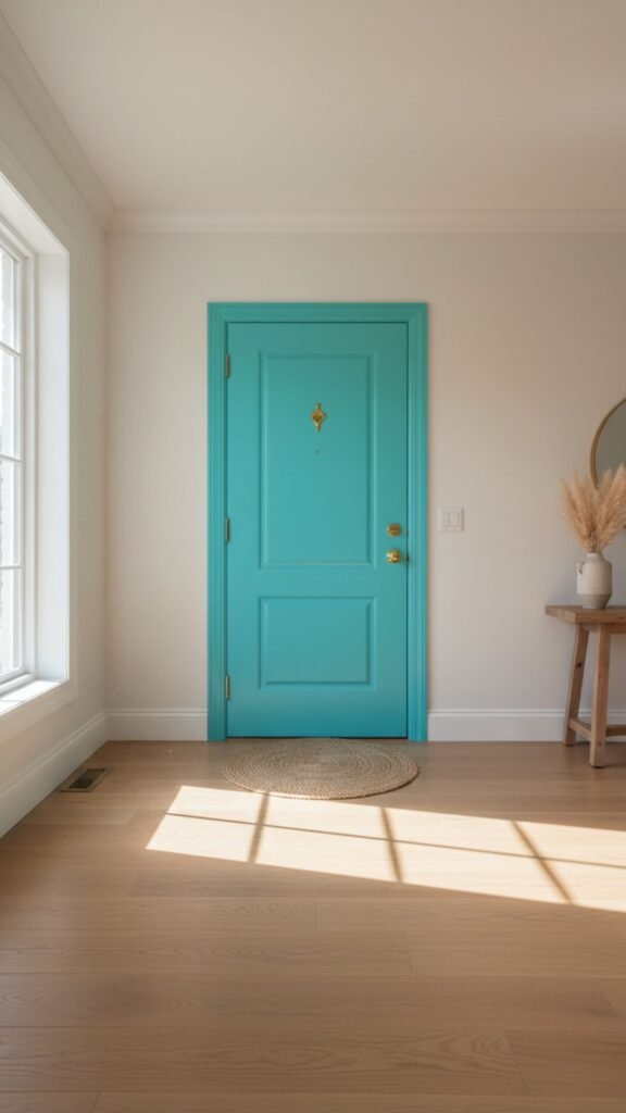 - Paint the door a vivid shade like turquoise, coral, or bright yellow.