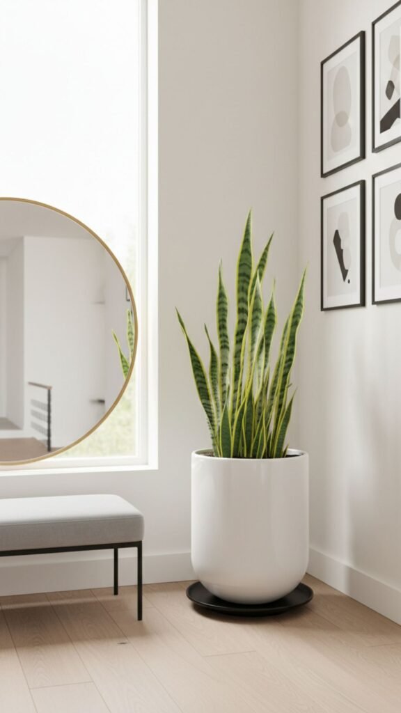 - Buy a snake plant or Monstera for bold, structural foliage.