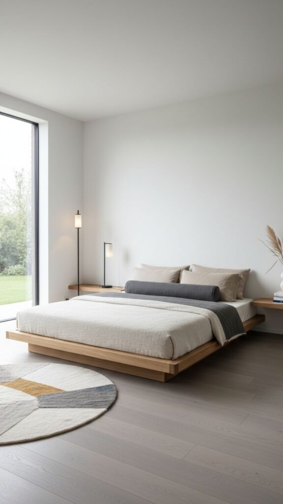 A low-profile platform bed serves as the foundation for modern bedroom design. These sleek frames eliminate the need for a box spring and create a streamlined look that draws the eye horizontally across the room. Choose designs with built-in storage drawers or floating bases to maximize space while maintaining clean lines.
