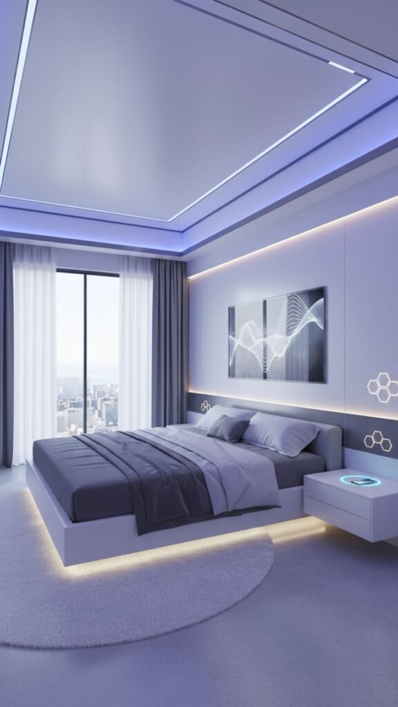 Modern bedrooms embrace technology seamlessly. Smart lighting, automated window treatments, and wireless charging stations enhance functionality while maintaining the room’s sleek appearance.