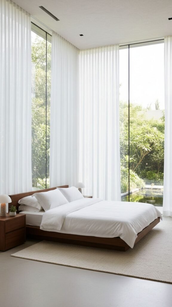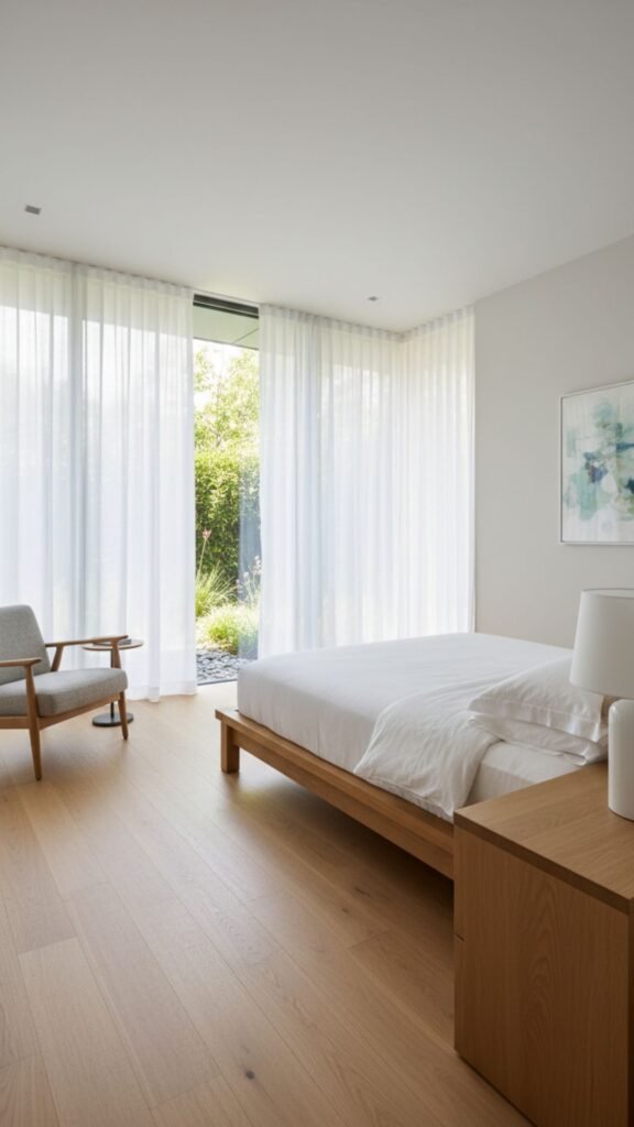 Incorporating natural elements softens modern design’s stark edges. Wood furniture, stone accents, and indoor plants add warmth and life to contemporary bedrooms without compromising their sleek appearance.