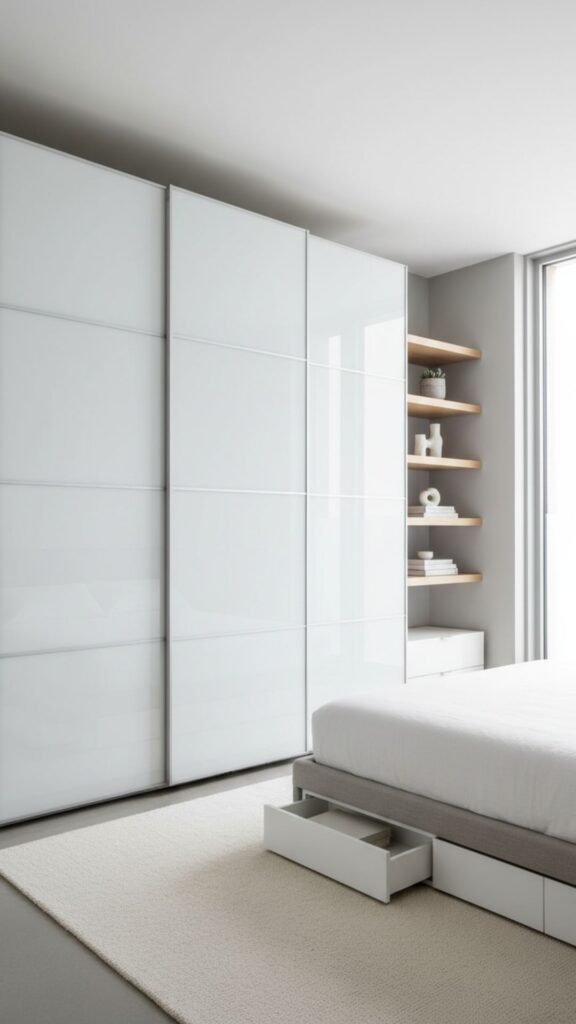 Modern design values functionality as much as aesthetics. Built-in wardrobes, floating shelves, and integrated storage keep clutter at bay while maintaining clean lines throughout the room.