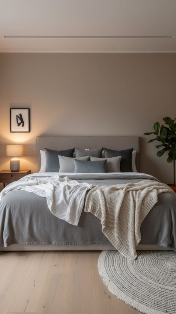 Modern bedrooms thrive on sophisticated neutral color schemes that create a calming environment. Whites, grays, beiges, and blacks form the backbone of contemporary design, allowing you to layer textures and introduce accent colors without overwhelming the space.