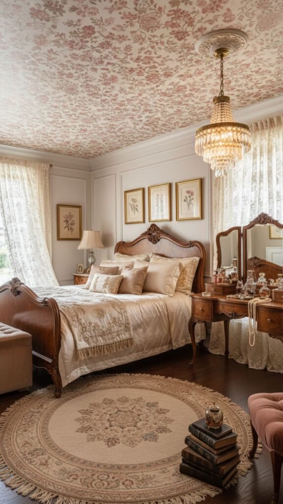 6. Vintage Wallpapered Ceiling