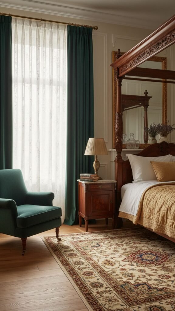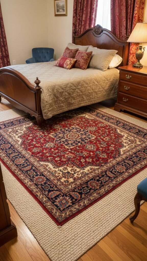 A richly patterned area rug anchors your juminocore bedroom and adds warmth underfoot. Persian and Oriental rugs feature intricate designs that complement the vintage aesthetic perfectly.