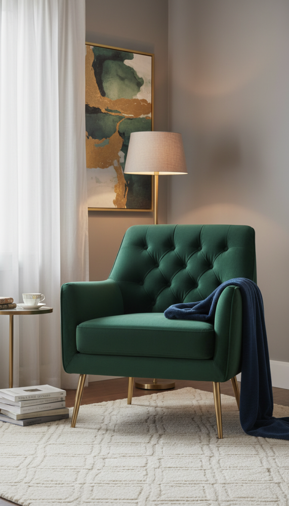 - Jewel Tones: Opt for emerald green, deep navy, or sapphire blue to make a bold statement against neutral walls.
