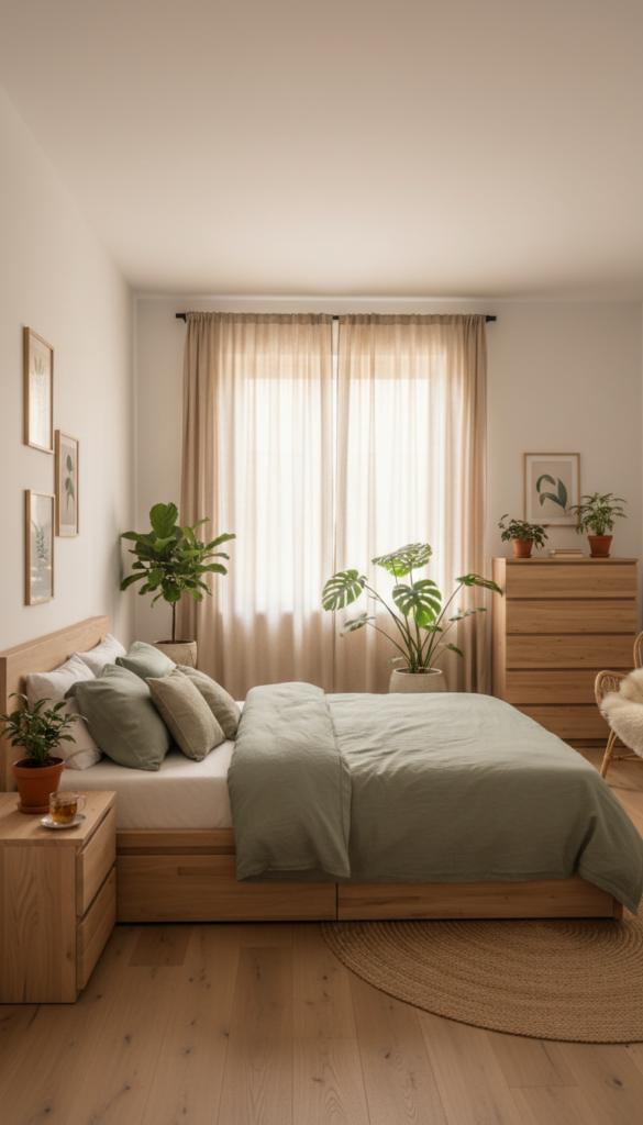 Bring the outdoors in with this nature-inspired palette. Sage green is muted enough to act as a neutral, while beige adds a warmth that pure white lacks. This combination mimics the colors of a forest floor, grounding you and helping you feel centered before sleep.