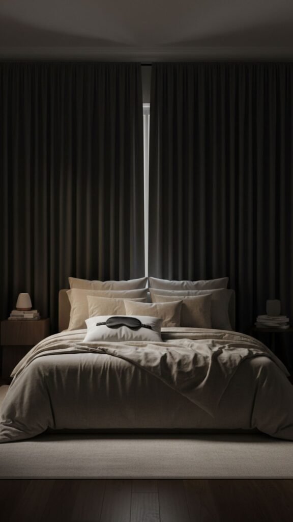 Darkness triggers melatonin production, which is essential for quality sleep. Blackout curtains or a comfortable eye mask ensure complete darkness, even if you live in a well-lit area.