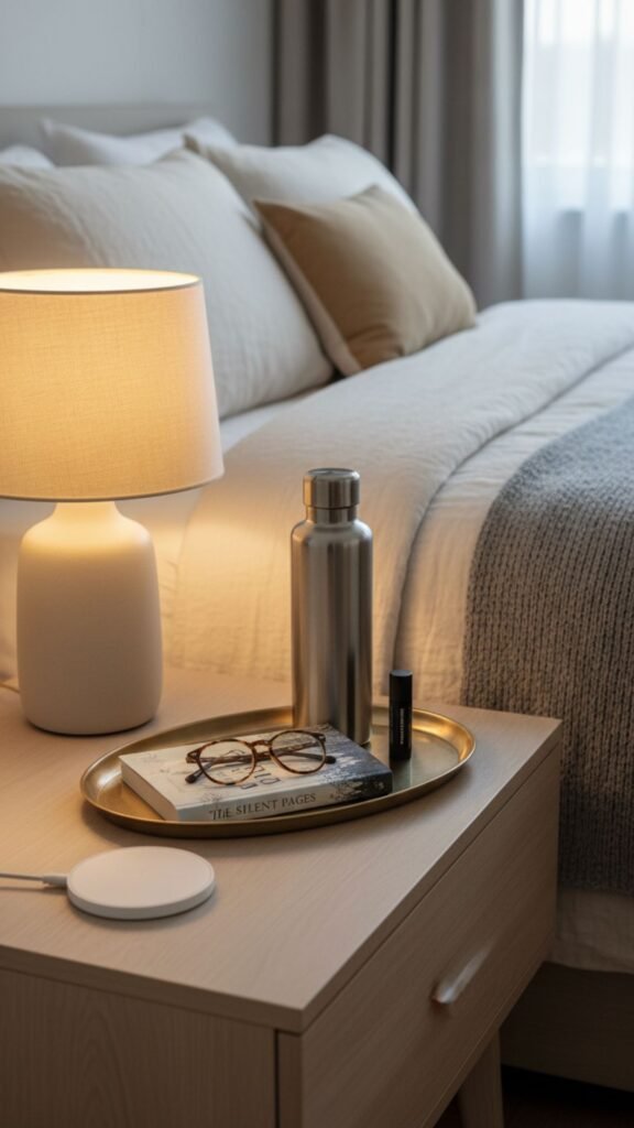 • Use a bedside caddy or organizer for books, phones, and remotes
