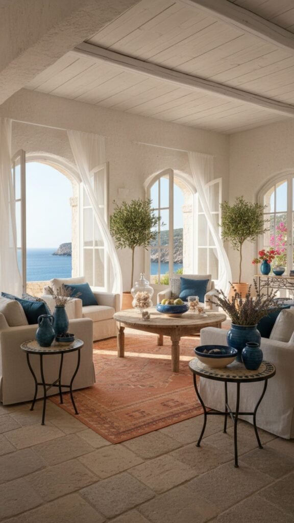 Deep azure blues and warm terracotta accents evoke the sun-drenched European coast. This mood board blends rustic charm with vibrant colors. It brings the warmth of a Mediterranean summer into your home year-round.