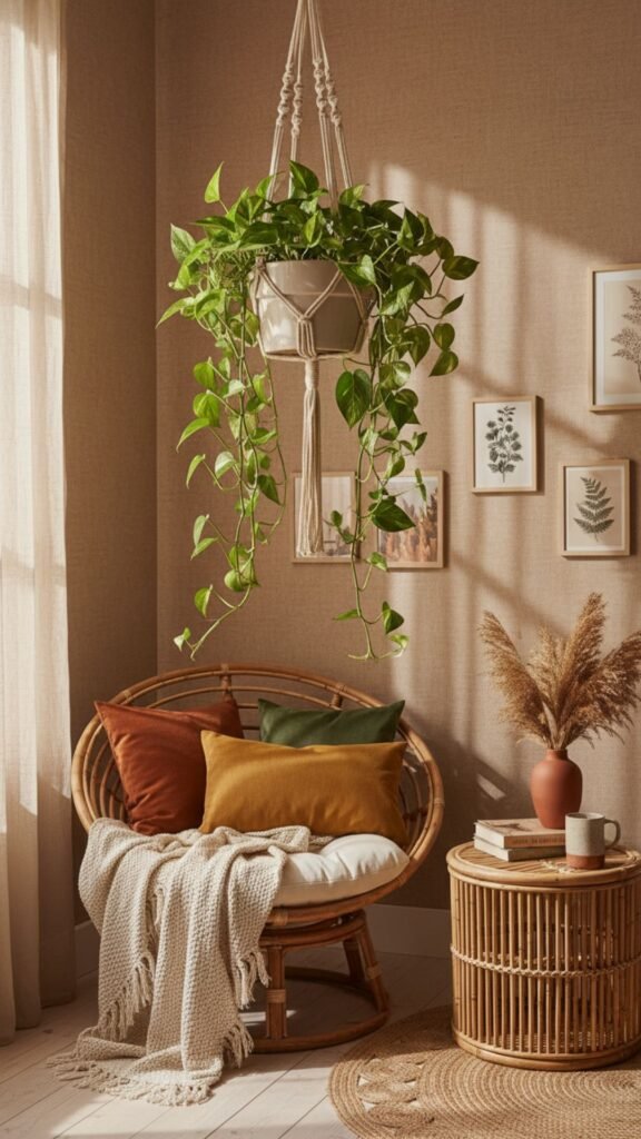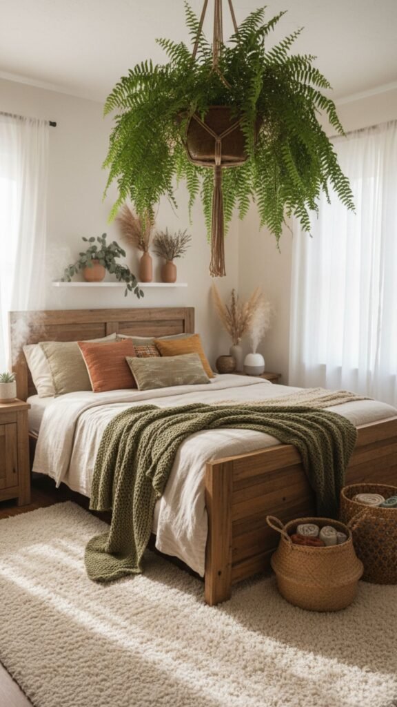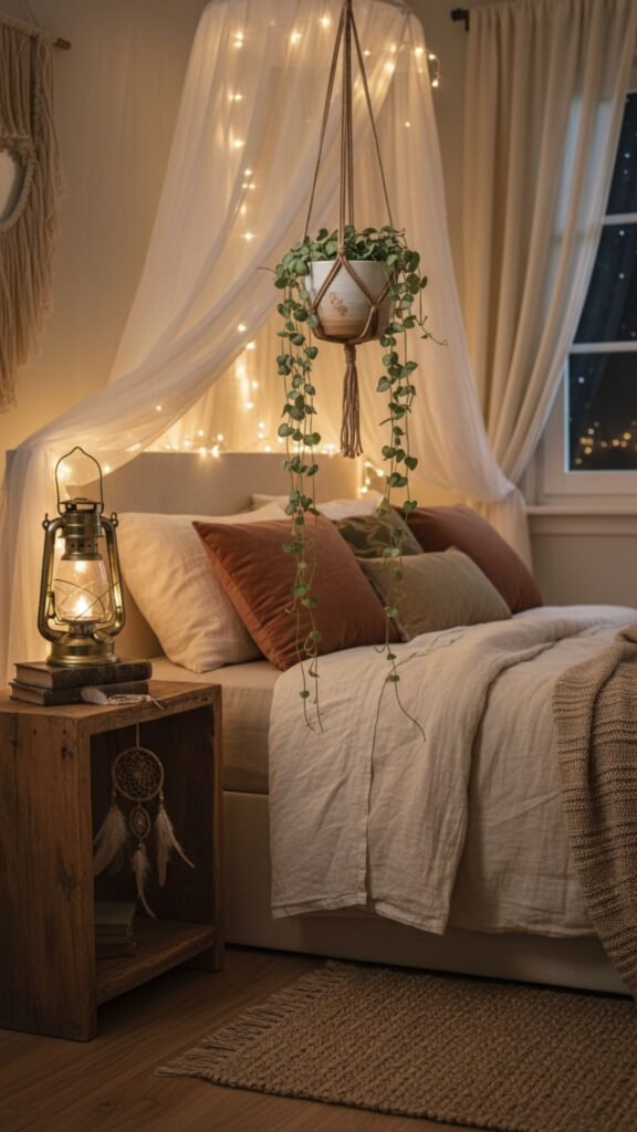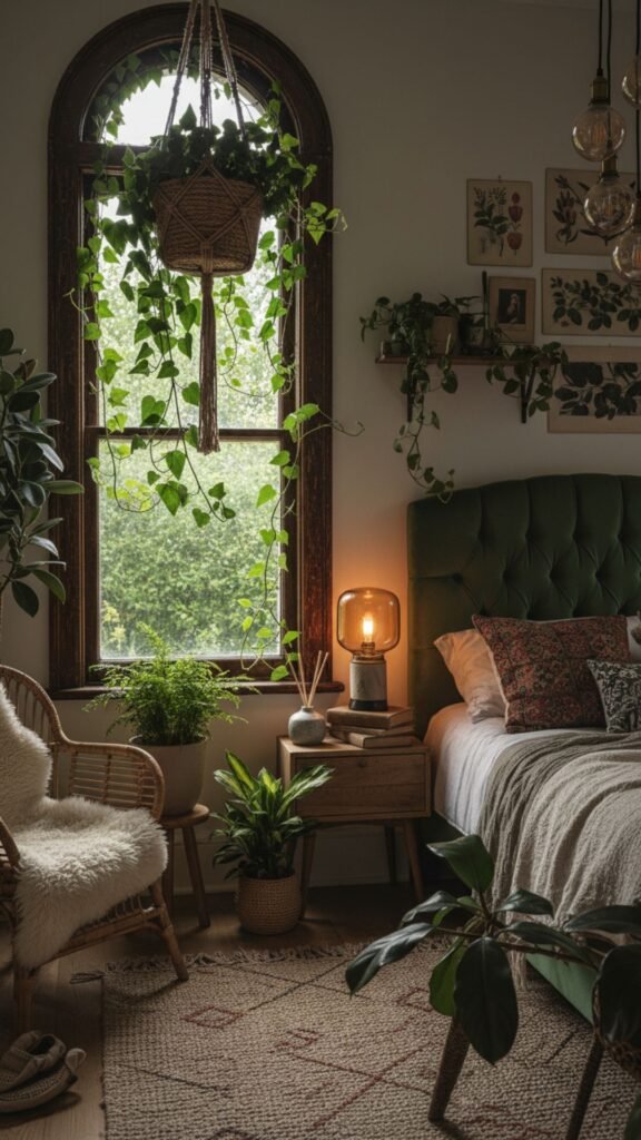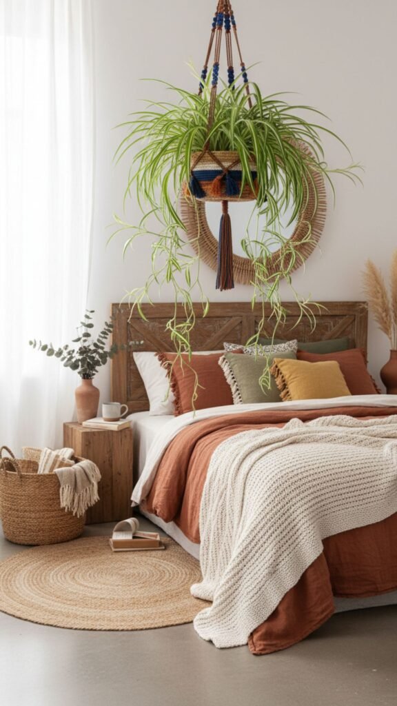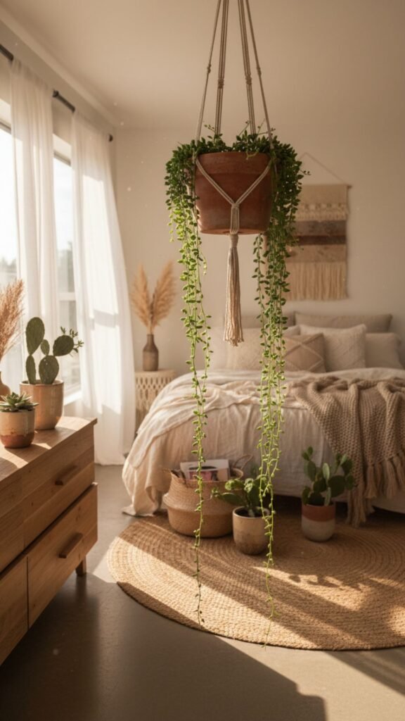 A single trailing plant can transform a plain corner into something that feels alive, layered, and intentional. That’s the magic of hanging bedroom plants — they draw the eye upward, add texture, and bring the kind of organic warmth that bohemian decor thrives on.