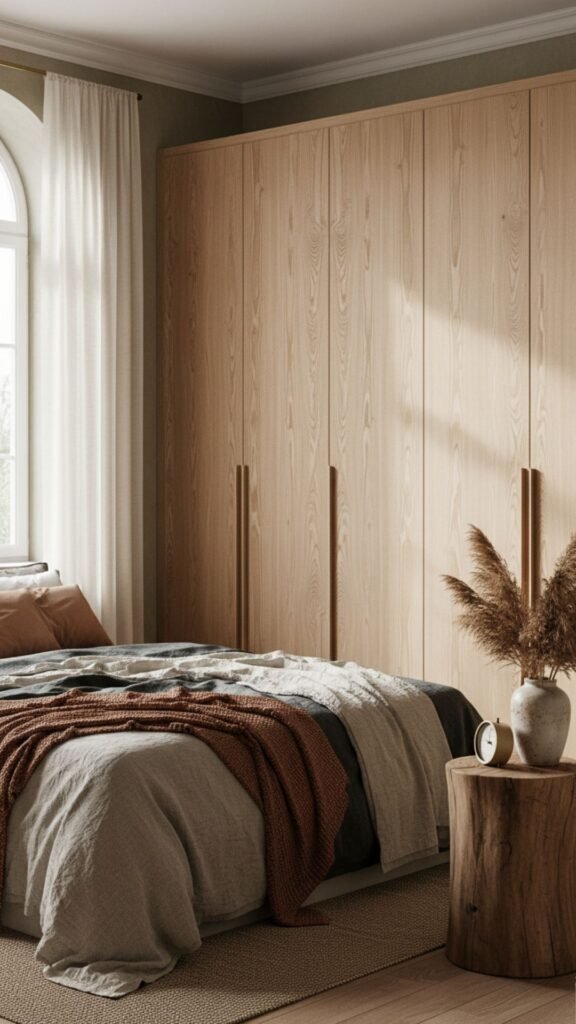 Bring warmth and organic beauty into your bedroom with natural wood wardrobes. This timeless trend celebrates the grain and texture of real wood, creating a cozy, inviting atmosphere.