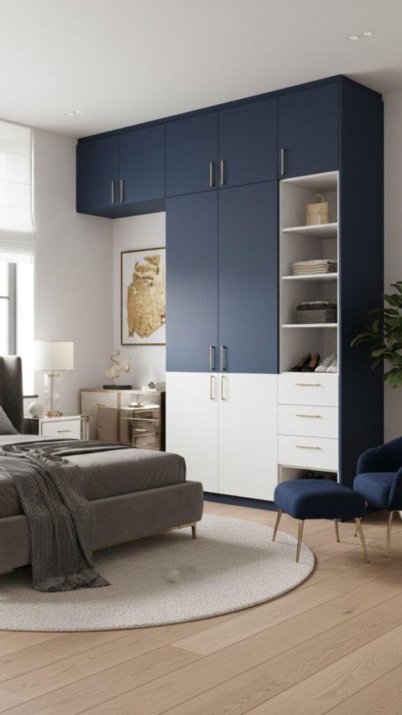 Make a bold statement with wardrobes featuring contrasting color combinations. This trend adds visual interest and personality to your bedroom while remaining sophisticated.