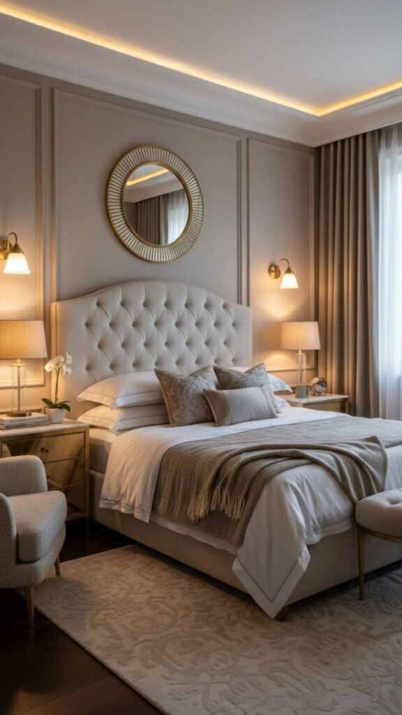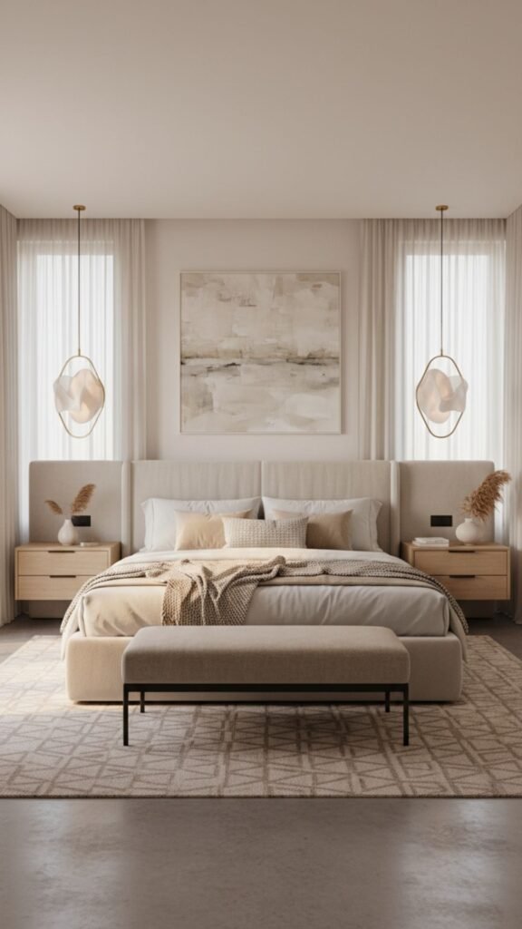 Wall sconces offer a sophisticated lighting solution that doesn’t require bedside table space. These fixtures add architectural interest while providing directional light perfect for reading or creating ambient mood lighting.