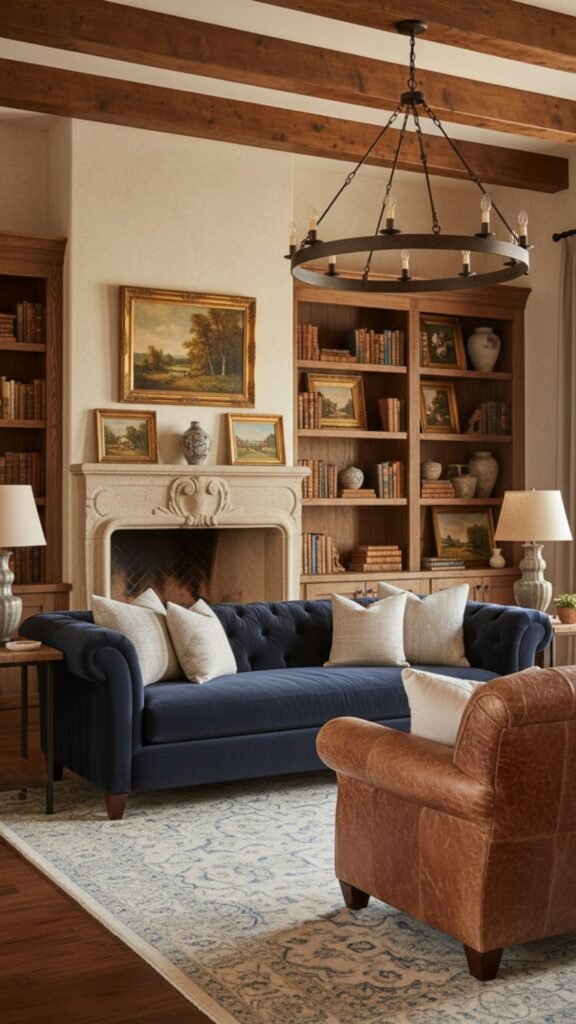 - Incorporate one or two vintage-style leather accent chairs.