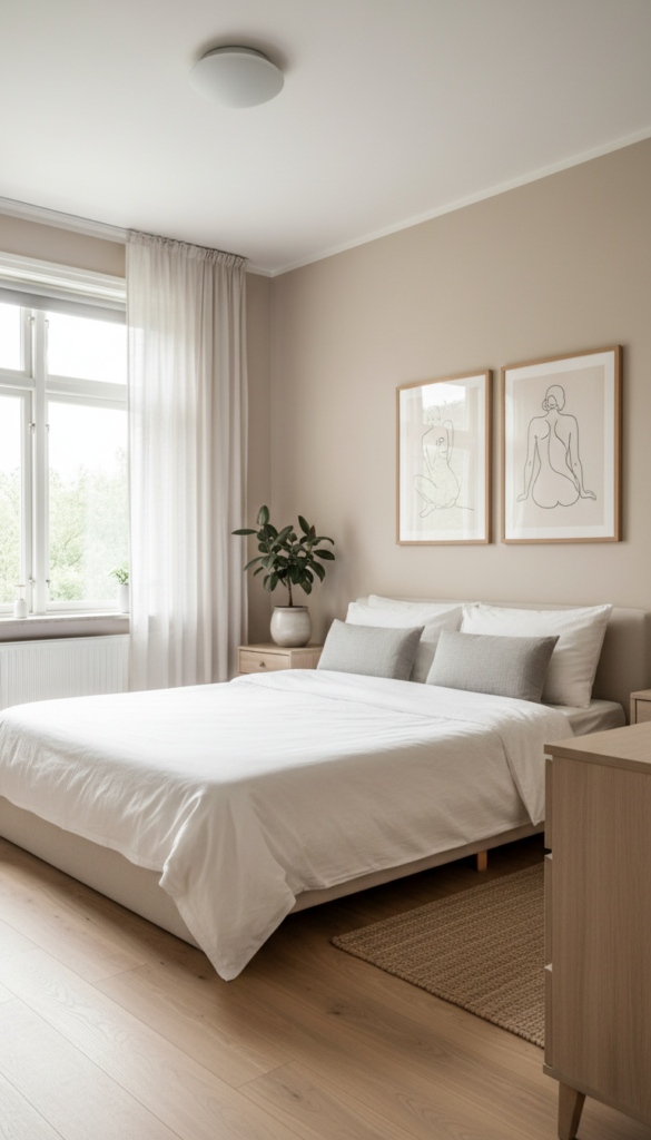 Sometimes, luxury is defined by what you leave out. Minimalist line drawings—often single continuous lines forming figures or shapes—feel airy and intellectual. They prevent visual clutter, which is key for a relaxing bedroom environment.