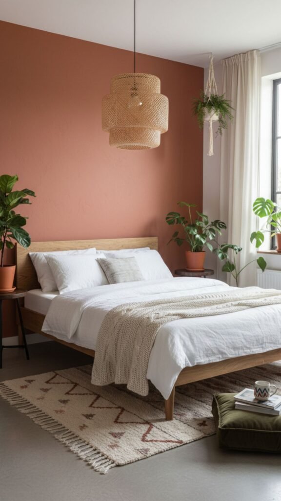 Terracotta brings an instant surge of warmth and grounding energy to any sleeping space. This rich, baked-earth tone mimics the natural world, creating a cozy and enveloping atmosphere. It pairs beautifully with natural wood furniture and lush green plants.