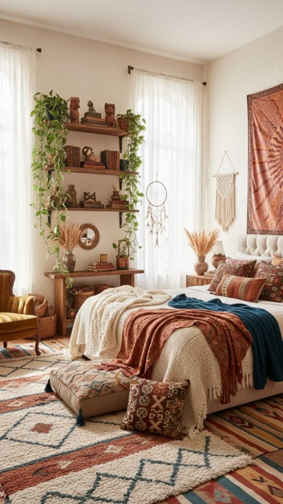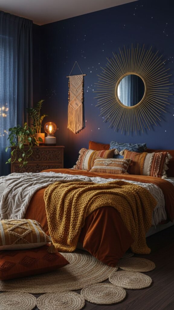 Indigo brings a moody, celestial energy to the bohemian bedroom. This rich, deep shade encourages relaxation and introspection, reminiscent of a clear night sky. It adds instant drama and pairs exceptionally well with bright, warm accents.