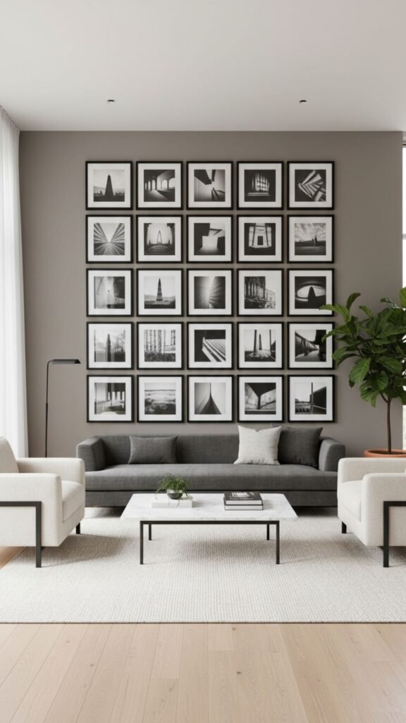 Removing color from your photographs unifies diverse subjects and time periods. A black and white photo wall exudes timeless elegance, blending seamlessly with any existing color palette in your living room. It allows the viewer to focus on emotion, texture, and composition rather than competing hues.