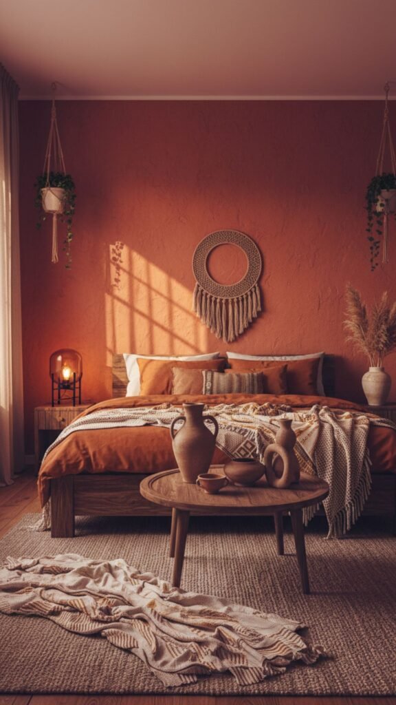 - Paint an accent wall in a terracotta or clay shade.