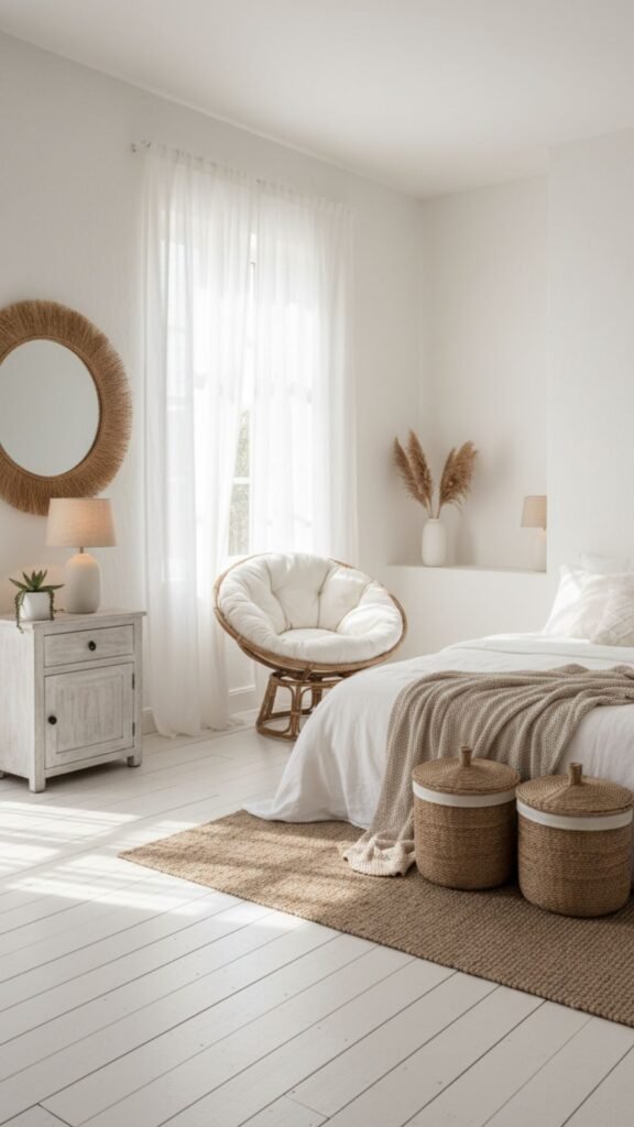 For those who love the boho vibe but hate the clutter, this style blends Japanese minimalism with bohemian textures. It keeps the color palette strictly neutral.